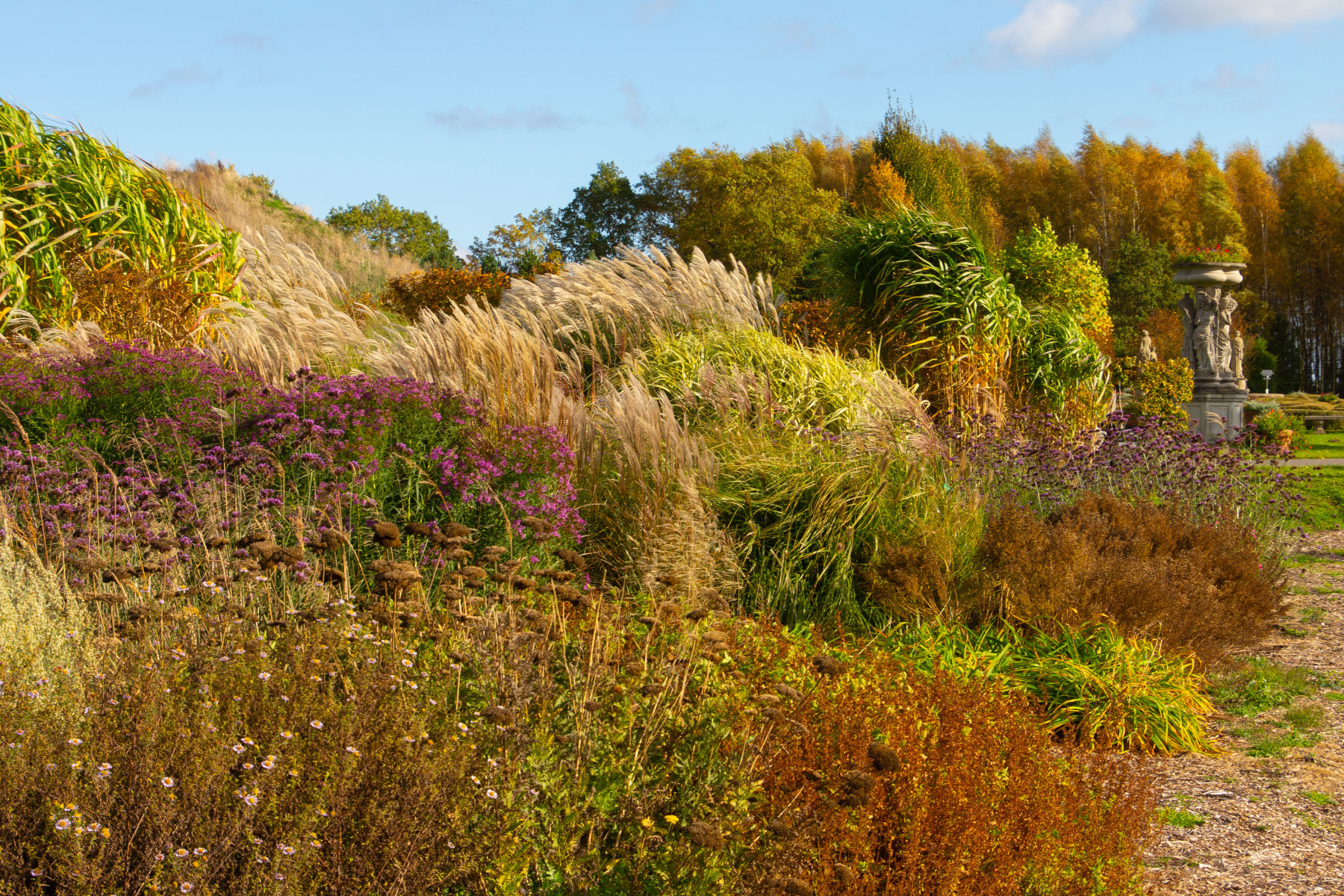 Czekają na Was setki metrów rabat pełnych bylin i traw – imponujących, bujnych i wciąż pięknie kwitnących. Złoto, pomarańcze i czerwienie tworzą tu niezwykły pejzaż, w którym można się po prostu zatracić.