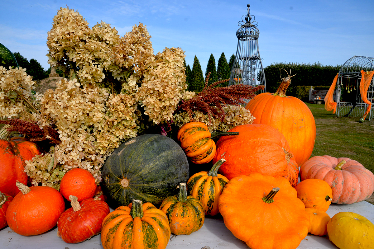 Farma dyniowa w Ogrodach Hortulus Spectabilis otwarta została 22 września podczas Dyniowego Garden Party. Od tego momentu dyniowe dekoracje zdobią całe ogrody. I tak aż do 11 listopada, pomiędzy barwnymi rabatami można napotkać jesienne aranżacje, w których królują dynie.