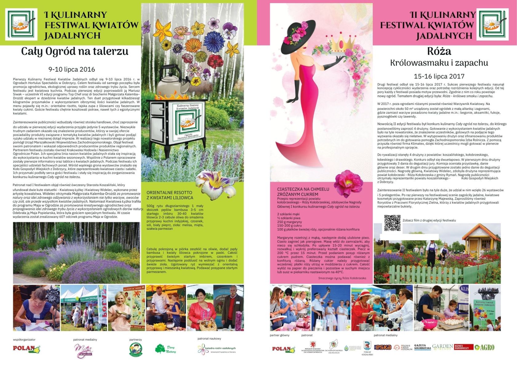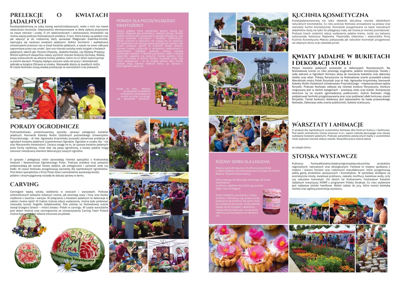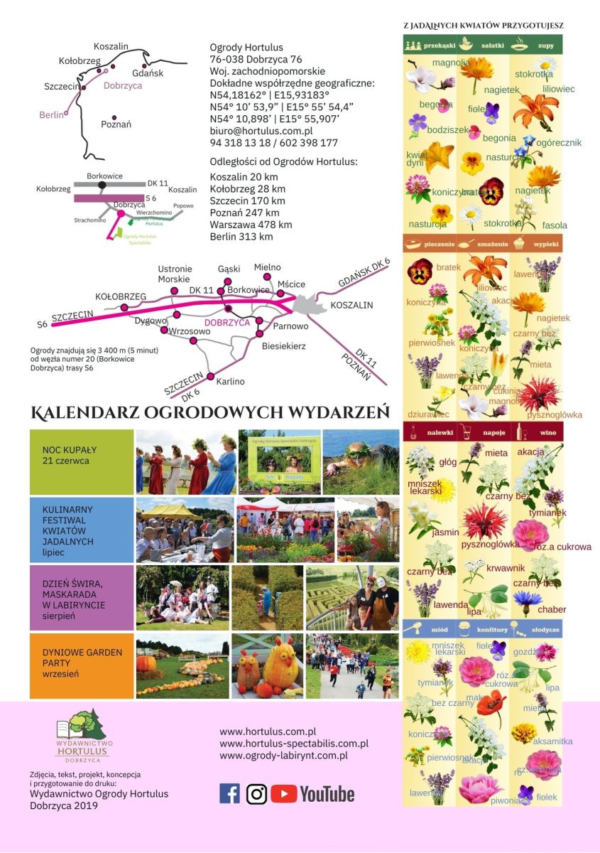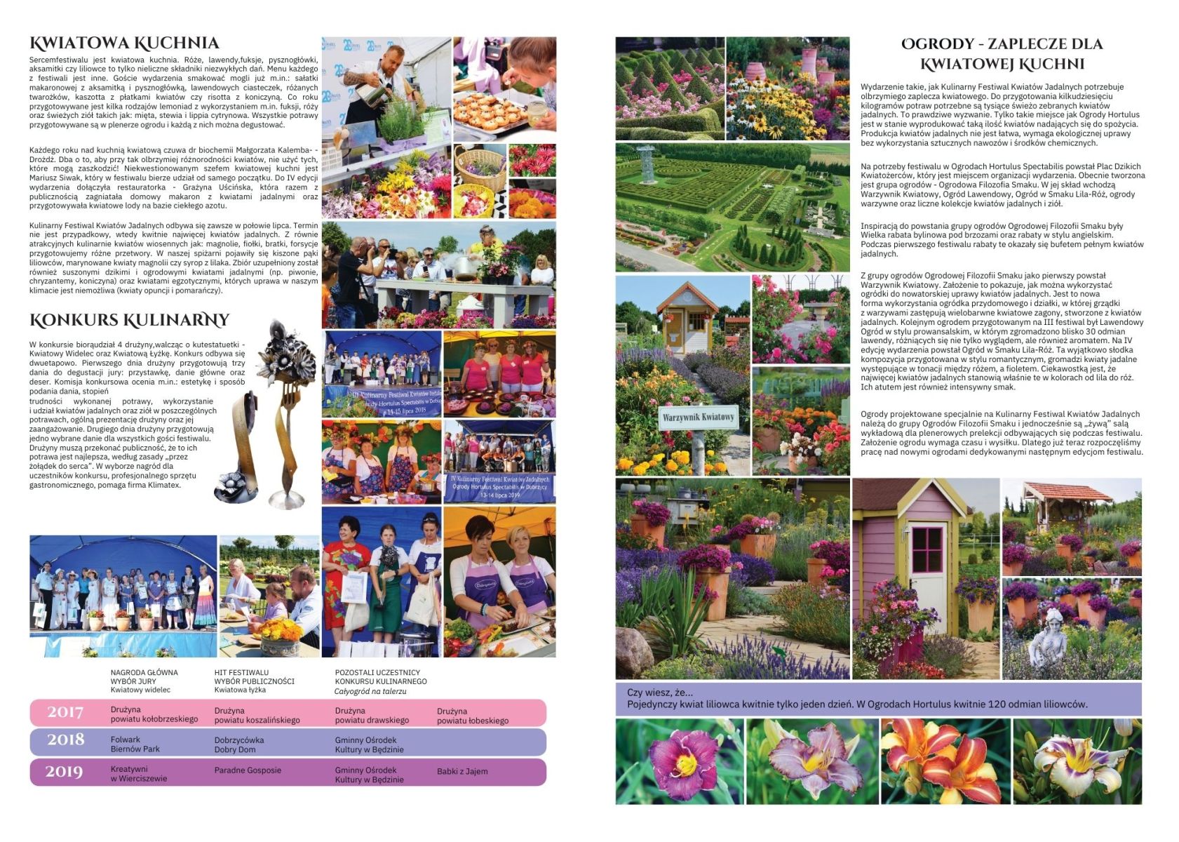 Broszura wydana w 2019 roku prezentuje cztery pierwsze edycje Kulinarnego Festiwalu Kwiatów Jadalnych – wydarzenia, które z małej inicjatywy przerodziło się w wyjątkowe święto kwiatów jadalnych!