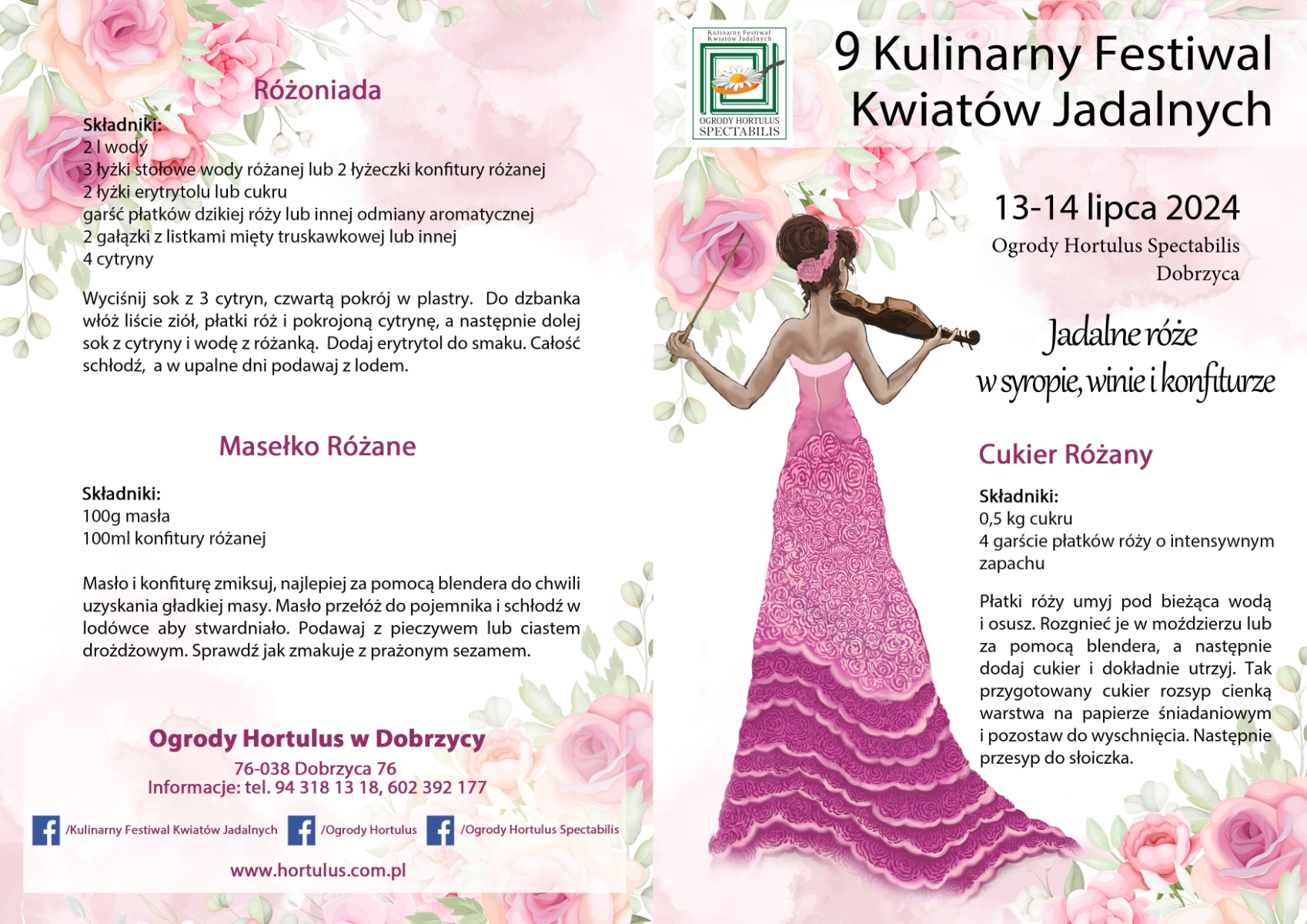 Kulinarny Festiwal Kwiatów Jadalnych to wyjątkowe wydarzenie łączące kreatywność kulinarną oraz piękno Ogrodów. Każda edycja festiwalu odbywa się po różnym hasłem, tematem tegorocznego festiwalu były: „Jadalne róże w syropie, winie i konfiturze”. Oprócz róż na festiwalowych talerzach królowały: kwiaty liliowców, aksamitki, begonie, fuksje, agastache, pysznogłówki, nasturcja, kwiaty ziół (między innymi oregano, mięta, kolendra czy tymianek), dyni i cukinii. Co roku Festiwal przyciąga nie tylko olbrzymią liczbę miłośników kulinariów, ale ogrodnictwa i entuzjastów zdrowego trybu życia. Tegoroczna edycja zgromadziła zarówno profesjonalnych szefów kuchni jak i amatorów. Festiwal Kwiatów Jadalnych to impreza, dzięki której niewątpliwie rośnie świadomość na temat możliwości, jakie daje przyroda i bogactwa jakie kryją w sobie kwiaty jadalne.