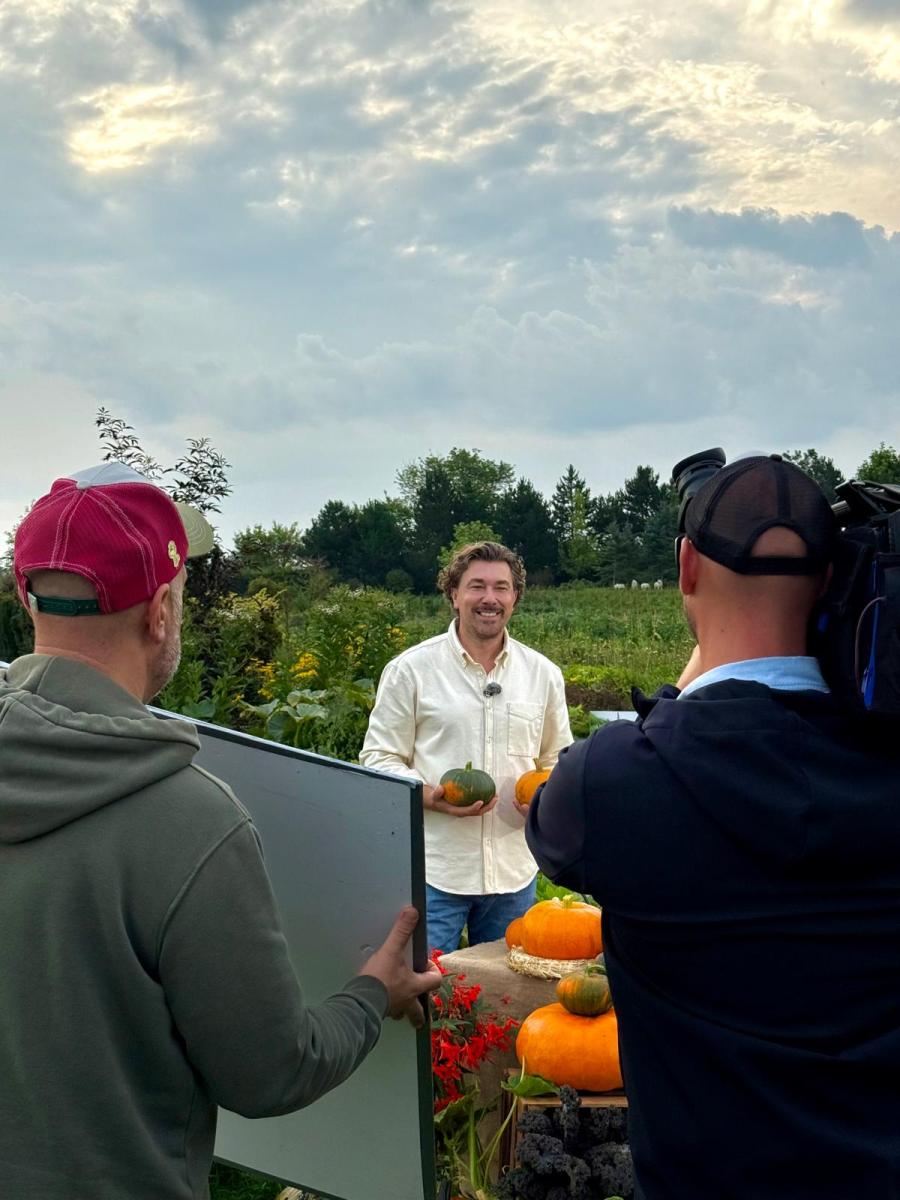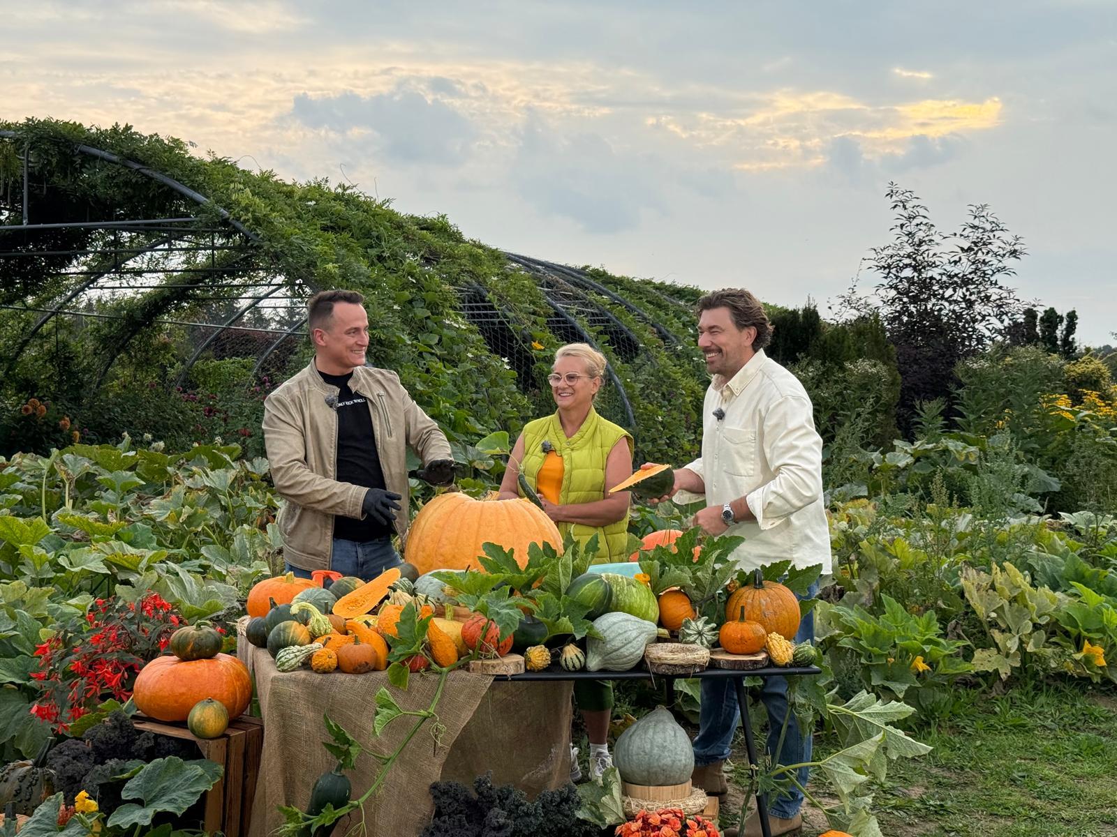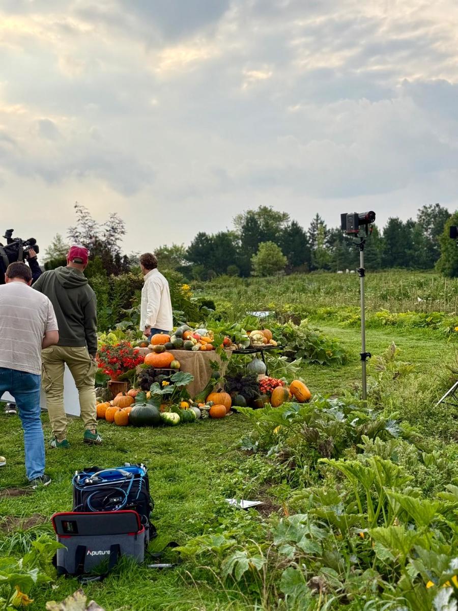 👉 Dzień rozpoczął się bardzo wcześnie – przygotowania ruszyły już o 6:30 rano. Pierwsze wejście odbyło się na naszych polach dyniowych, gdzie właścicielka ogrodów Hortulus w Dobrzycy opowiadała o odmianach dyni, ich zastosowaniu oraz terminach siewu i zbioru.